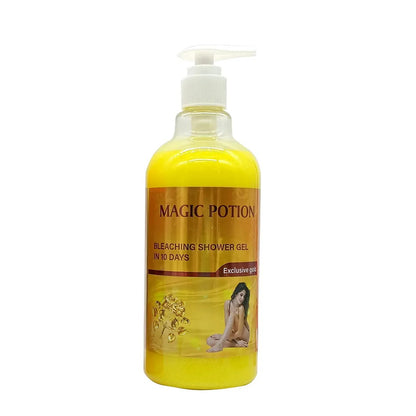 Magic Potion Perfume Bleaching Shower Gel (500ml) Magic Potion Bleaching Shower Gel gently cleanses, leaving skin soft, moisturized, and radiant. Contains goat's milk, rich in vitamins, minerals, and essential fatty acids, protecting skin's natural acids and moisture. Usage: Apply adequate amount to wet towel or shower cotton, rub bubbles evenly. Massage entire body, rinse with water. Caution: Avoid contact with eyes. Rinse thoroughly with water if contact occurs.