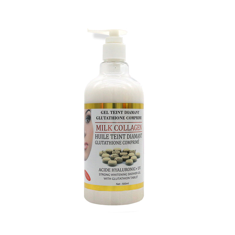 GLUTATHIONE COMPRIME MILK COLLAGEN SHOWER GEL 500ml MILD AND PH-BALANCED: A combination of skin-natural nourishers and plant-based moisturizers that deeply absorb into skin layers. Nourishes with a rich, creamy formula, leaving skin softer. Directions: Squeeze body wash onto a wet pouf or washcloth and work into a rich, creamy lather.